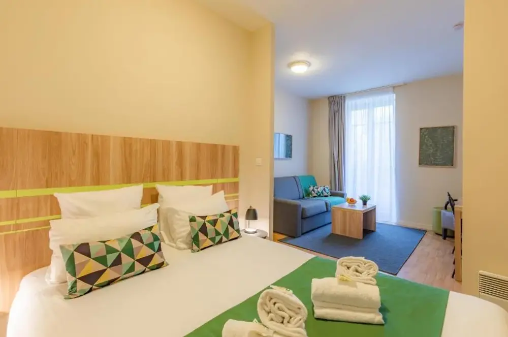 Nos appartements sont prêts à l’emploi (kitchenette, vaisselle, etc.). À votre arrivée, le lit est fait et les serviettes sont fournies. Vous n’avez pas besoin de nettoyer avant votre départ, car le ménage est inclus.